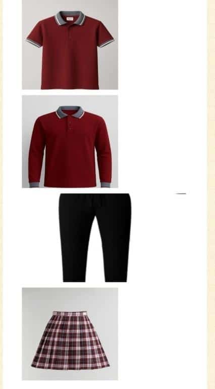 2025-2026 Eğitim Öğretim Ylında KullanIlacak Okul Forması üst giyim kız, doğal ve sağlıklı kumaşlardan (pamuklu) polo yaka uzun ve kısa kollu bordo renkli tişört, yaka ve kol manşetleri gri renk üzeri bordo ve beyaz çizgi. Erkek; doğal ve sağlıklı kumaşlardan polo yaka, uzun ve kısa kollu bordo renkli tişört, yaka ve kol manşetleri gri renk üzeri bordo ve beyaz çizgi. Alt Giyim Kız; Bordo ve beyaz çizgili etek veya siyah pantolon Erkek; siyah pantolon.Belirtilen bu kıyefetler öğrencilerimizin hem örnek görünüm içinde olmasıını hem de konforlu ve özgür bir şekilde hareket etmesini sağlayacaktır. Öğrencilerin okul kıyafetleri dışında giydikleri kıyafetle okula gelmemeleri rica olunur.